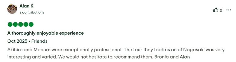 Experience the best of Nagasaki on tours designed to suit any schedule—from a quick half-day to a full-day adventure, or a fully customized itinerary. Explore must-see landmarks, savor local cuisine, and optionally enjoy a hidden gem or an authentic Japanese tea ceremony. Travel comfortably by air-conditioned car or historic streetcar, with every plan tailored to your preferences for a stress-free, unforgettable visit.