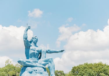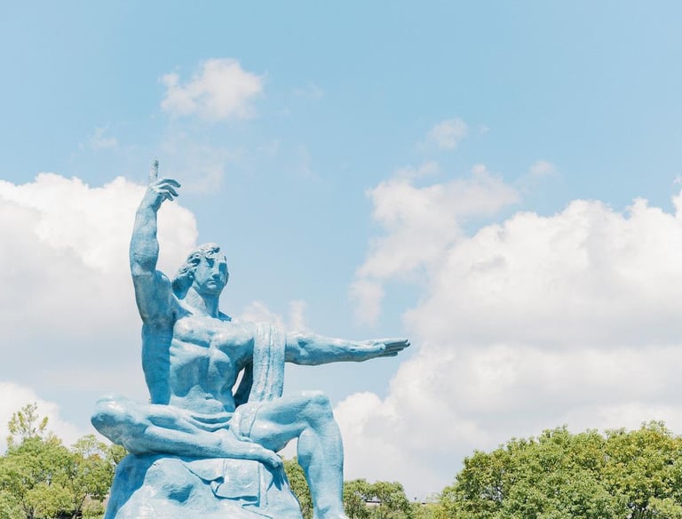 At Nagasaki Peace Park, you can walk among memorials and sculptures dedicated to the victims of the atomic bomb.